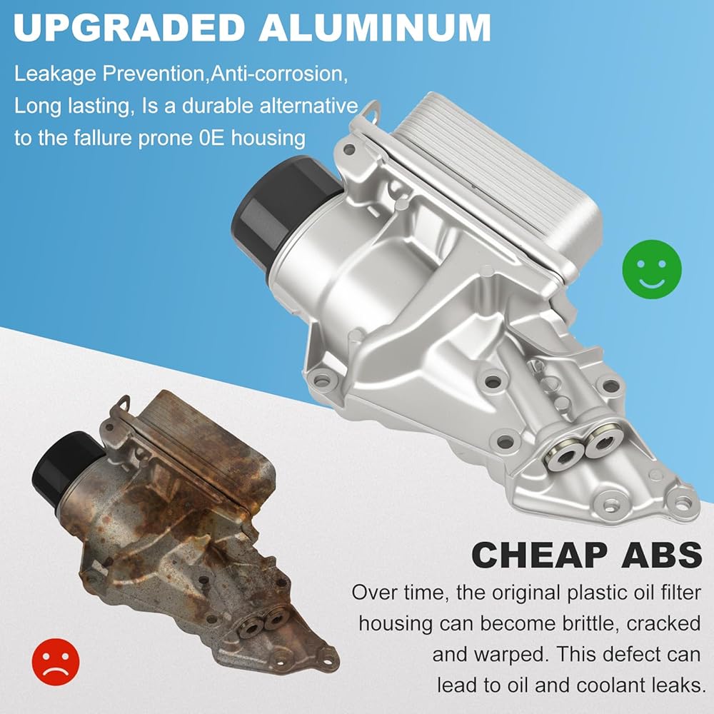 【Upgrade Quality】High-quality aluminum for wear resistance, high temperature resistance, sealed and leak-proof, long service life. The oil cooler filter housing meets or exceeds the original