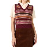 Women Vintage Sweater Vest Boho Argyle Plaid Pattern Knitted Vest Pullover Y2k Preppy V Neck Sleeveless Sweater Tops