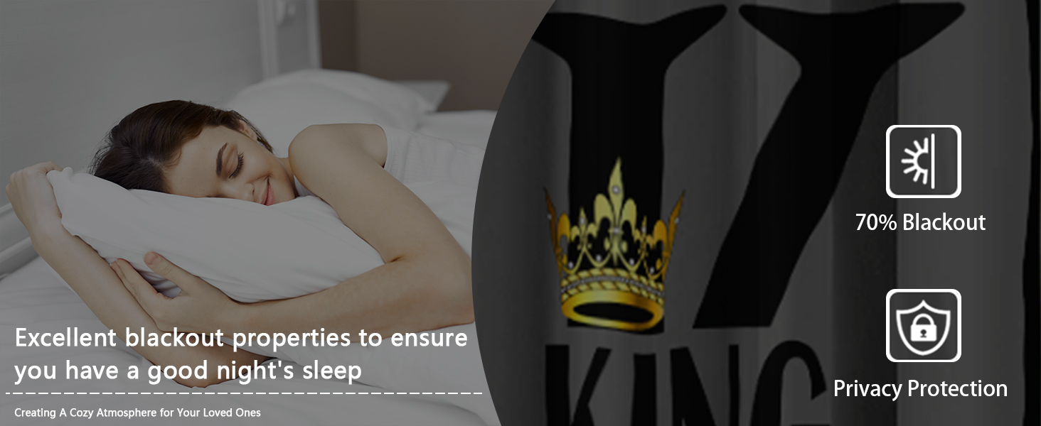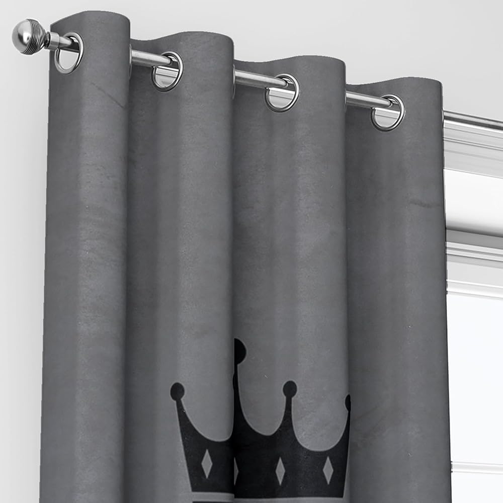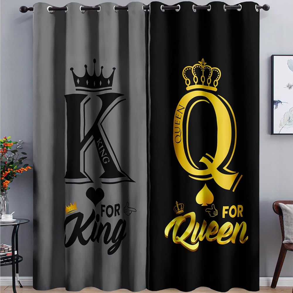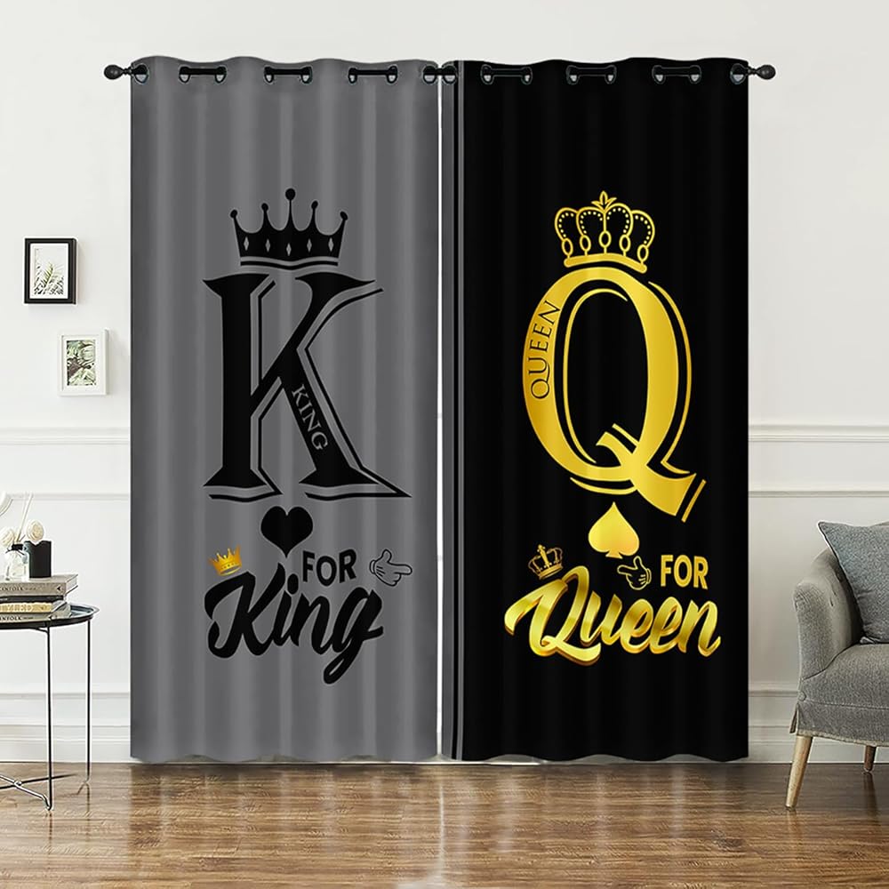 AILONEN Grey and Black Window Curtain,K and Q Crown Printed Drapes Gifts(2 Panels Set),King Queen Themed Minimalist Window Treatments Drapes for Bedroom Living Room 42" W x 63" H Home Decor