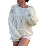 Feature: knitted sweater, womens sweaters, lightweight sweater, fall clothes, cute sweaters, sweater top, vintage sweaters, womens fall tops, oversized sweaters, crew neck, solid colour, long sleeves, loose fit, openwork design