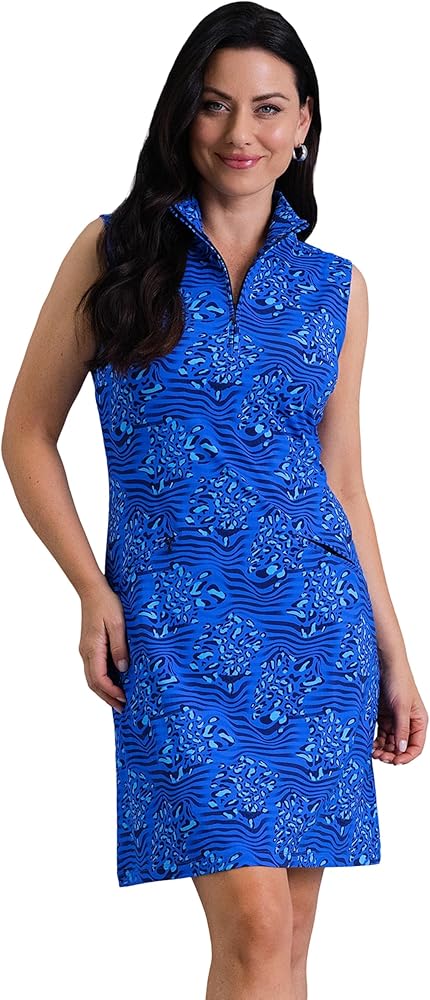 Make an impression in the Yun Print Mock Neck Dress, where classic animal pattern meets high-performance design. With its bold stripes and spots, this statement style moves effortlessly from casual rounds to dinner out. Crafted with IceFil technology, it cools, wicks, and protects — so you look as confident as you feel.