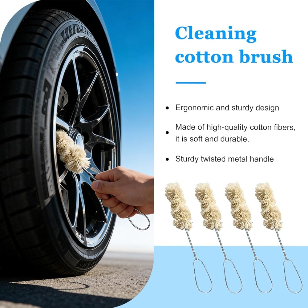 High Quality Material: This product is crafted from high-quality cotton thread and galvanised iron. The cotton fibres are fluffy yet resilient, preventing scratches to the tyre surface while evenly absorbing and releasing lubricant to avoid dripping waste. The connecting rod, made of galvanised iron, offers good hardness and resistance to bending, providing stable support that easily penetrates tyre crevices.