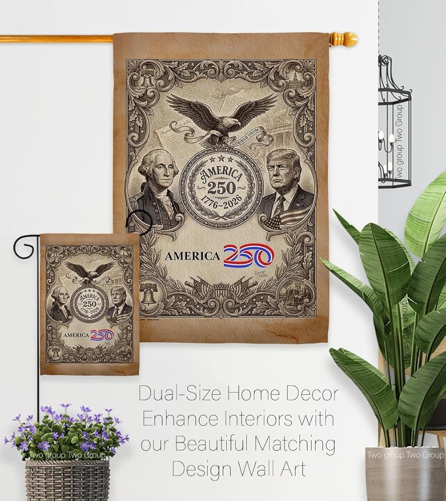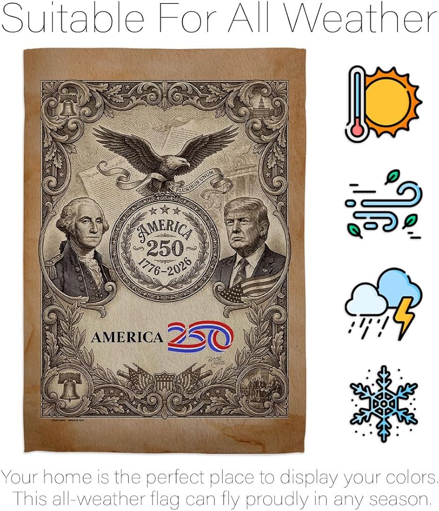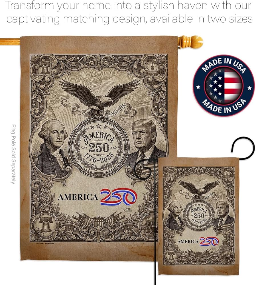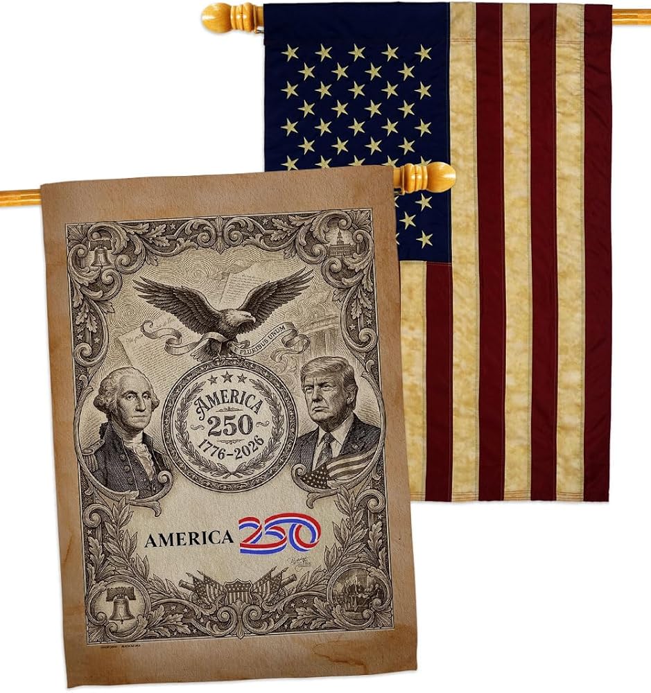 America 250 Trump Flag Tribute Vintage American Flags for Outside House Banner Pack Official Licensed Merchandise Wall Decor Canvas Print Textile Woven Tapestry USA 250th Anniversary Decoration Gift