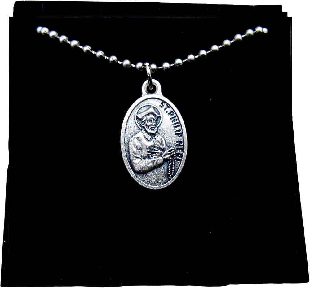 Saint Phillip Neri Medal and Ball Chain- Patron of Special Forces This quality St. Phillip Neri medal is die cast in Italy for exceptional detail. Made in Italy, silver oxidized and measures approximately 1 inch. Stainless Steel Ball Chain (Will not rust or tarnish).
