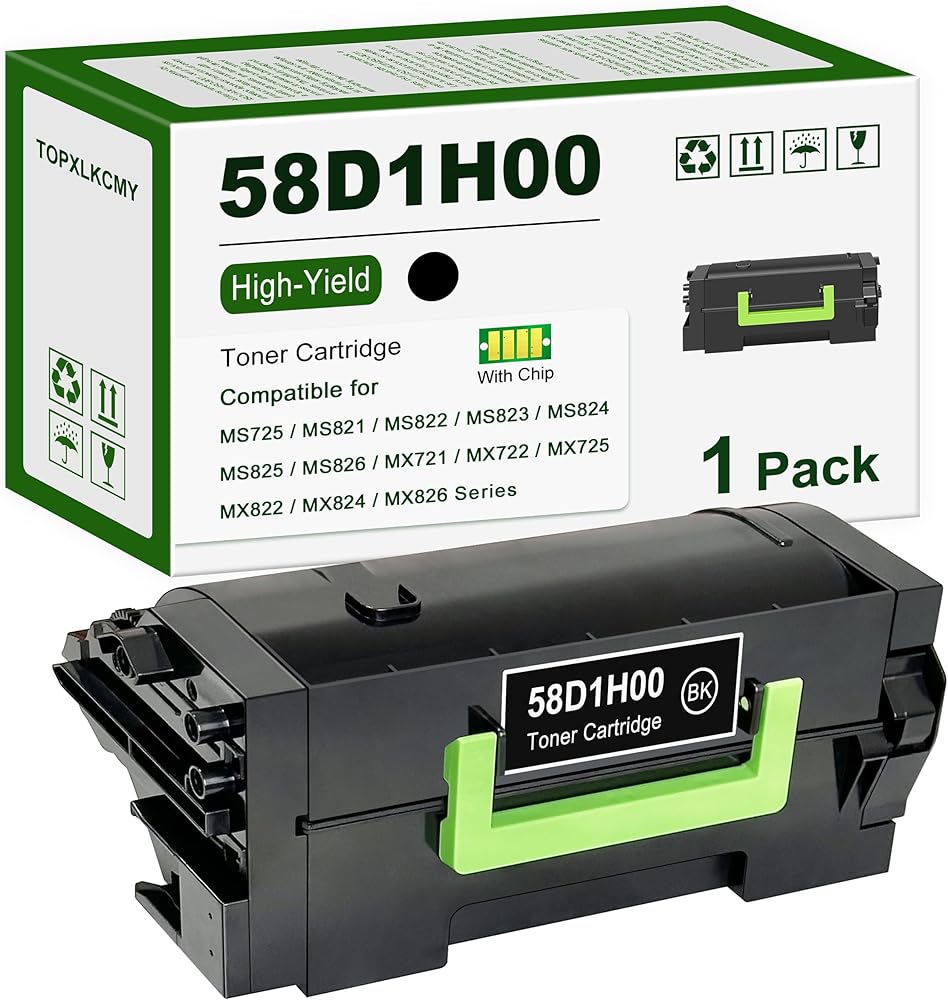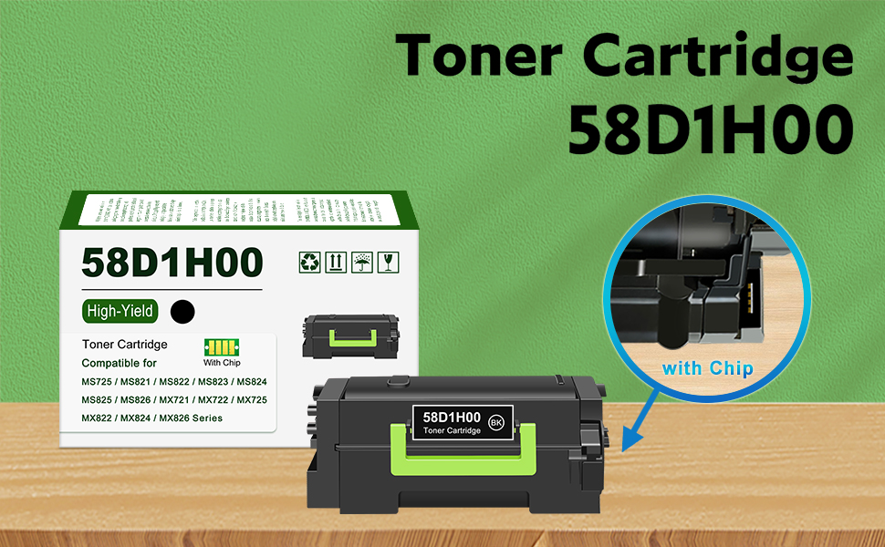 【With Chip】: Our 58D1H00 toner cartridge are already installed with latest chips, it is easy to replace and works instantly
