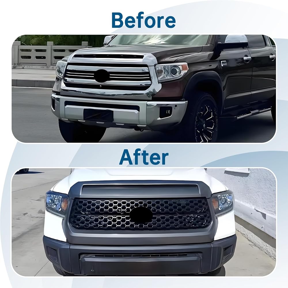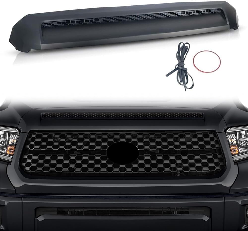 Front Upper Hood Bulge Molding Grille Trim Fit For Toyota Tundra 2014 2015 2016 2017 2018 2019 2020 2021 Front Bumper Grille ABS Plastic Matte black, BY-171