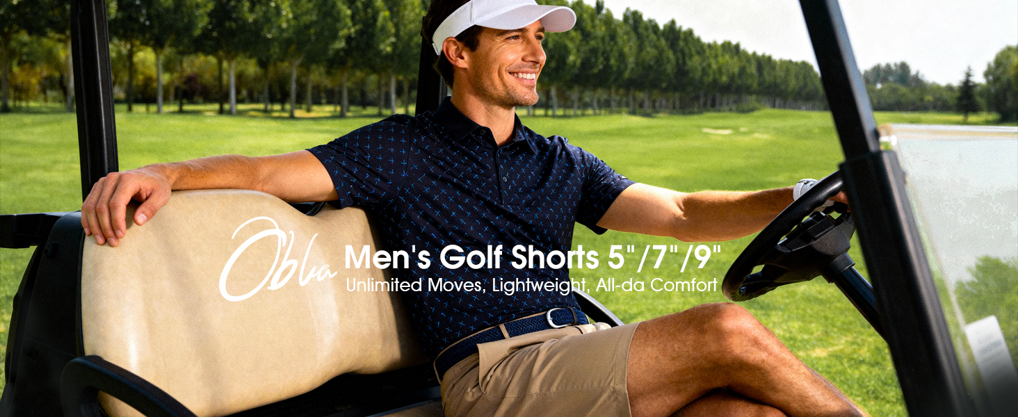 VERSATILE FOR EVERYDAY LIFE: Obla men's golf shorts transition seamlessly from course to casual; ideal for hiking, travel, work, or dressed-up occasions with stylish comfort.