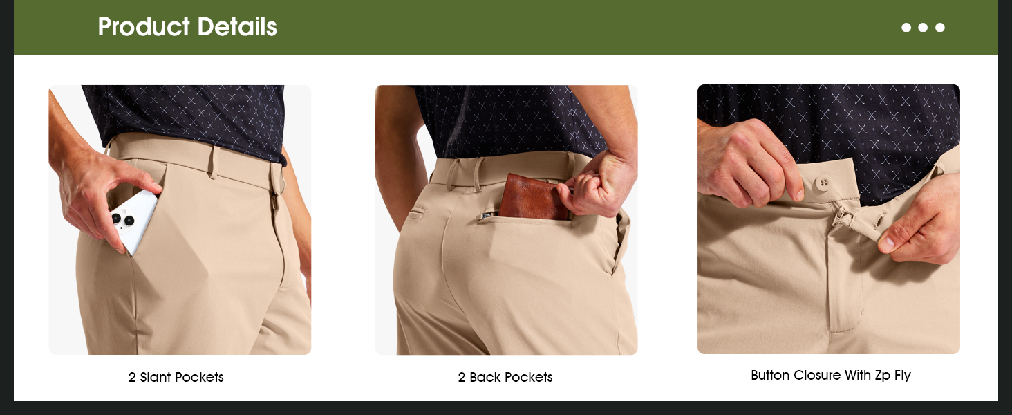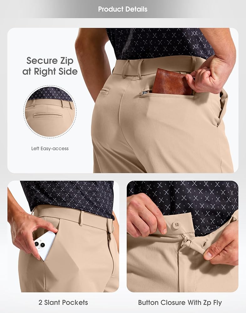 4 FUNCTIONAL POCKETS: Deep, secure storage including one zippered back pocket; holds golf essentials like balls, tees, wallet, and phone without bulk for a polished profile.
