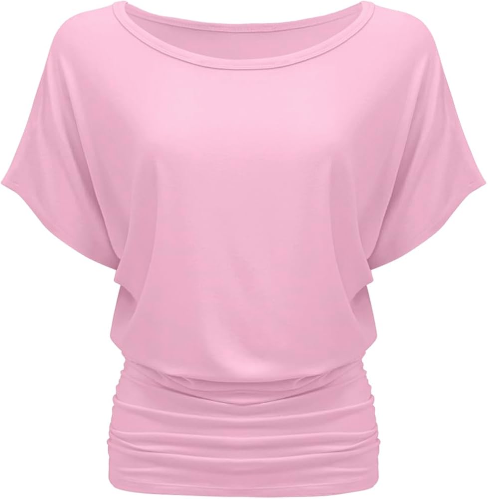 Women's Boat Neck V Neck Short Sleeve Draped Dolman Top with Side Shirring Premium Shirt