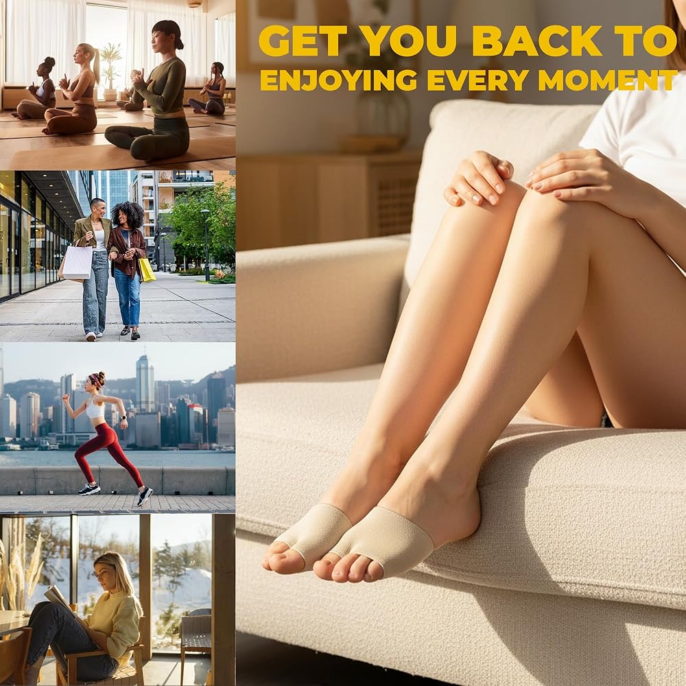 All-Day Ball of Foot Support:Our metatarsal pads premium gel fits support and cushion across the entire forefoot,distributing pressure points on the forefoot.Effectively alleviate metatarsalgia, Morton's neuroma and general ball-of foot pain,ideal for high heels, running shoes, or daily wear to reduce discomfort from bunions, calluses, or prolonged standing