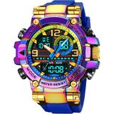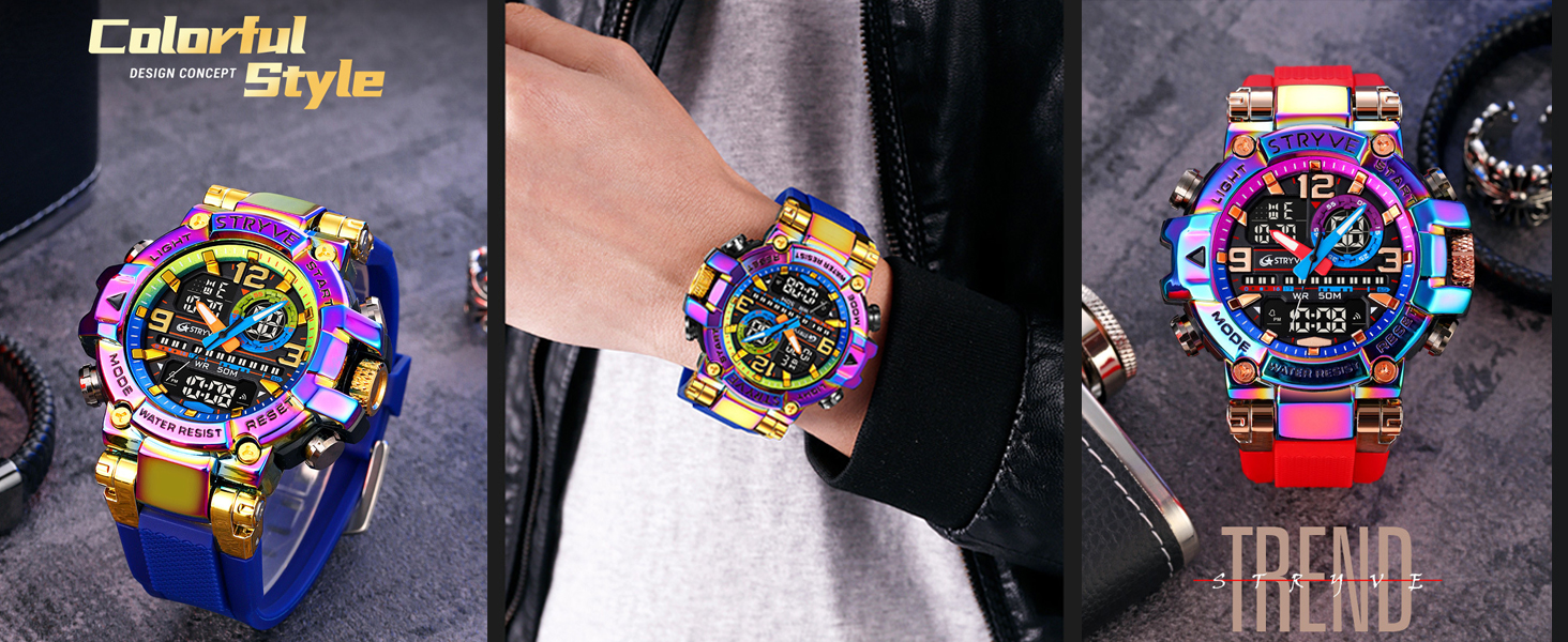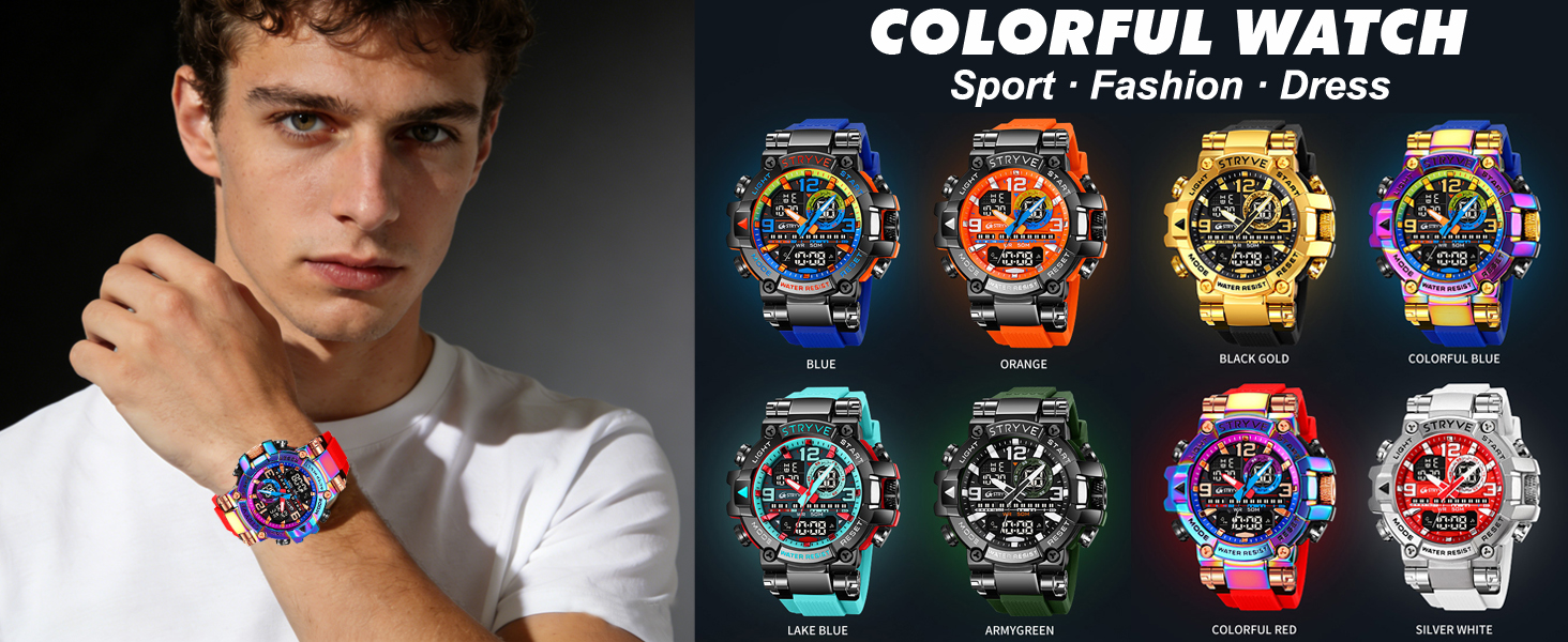 Colorful Sports Watch: The mens fashion watches combine both sporty and fashionable styles, reflecting a trendy and adventurous style. Also has super shock and drop resistance, do not worry about breaking it. Adopt digital and analog two time zones dial, let you read time easier.