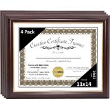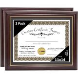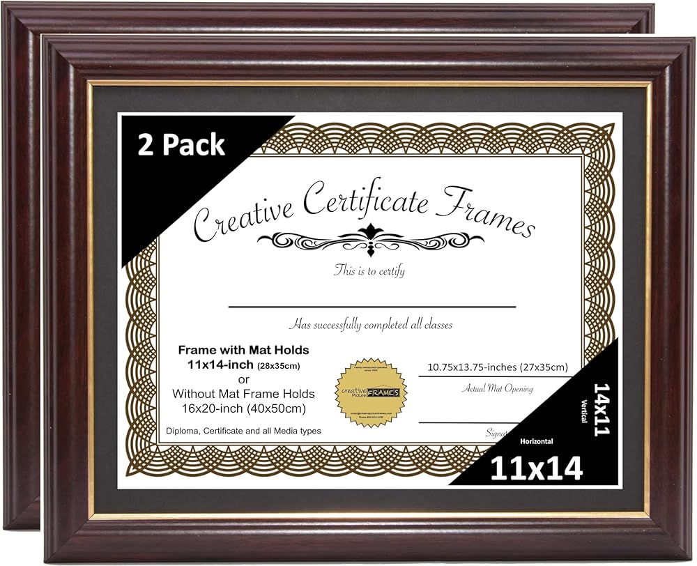 STYLE- Mahogany with gold rim 1.25-inch satin black finish molding with glass and installed wall hanger 11x14-inch frame no mat