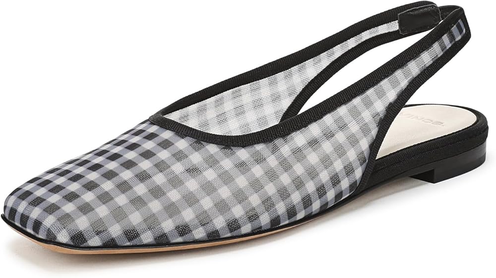 Our slingback flat's classic, sheer gingham motif is complemented by a squared topline and toe.
