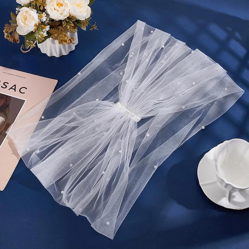 2. ✨ Hand-Sewn Pearl Embellishments Adorned with hand-sewn, lustrous pearls scattered across the tulle, this accessory elevates your look with subtle, sophisticated sparkle. The varying sizes of pearls catch the light beautifully, turning a simple dress into a showstopping ensemble.