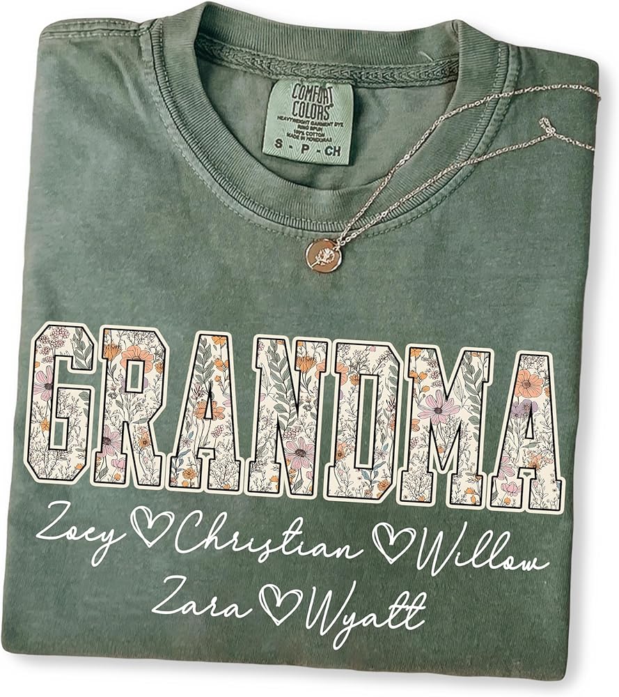 Customizable Mama Grandma Shirt – Personalize this beautiful shirt with your kids' names, creating a unique and heartfelt gift that celebrates the love between moms, grandmas, and their children.
