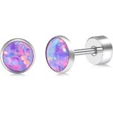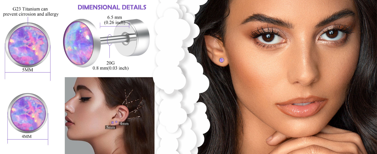 These Opal Titanium flat-back earrings are crafted from high-quality titanium steel and are available in three sizes: 3mm (delicate and compact), 4mm (classic and versatile), and 5mm (stylish and eye-catching). The "Multi-Color Lavender" pair features a dreamy gradient color, while the "Fire & Snow" pair features a vibrant red and white contrast for a striking look. Clean your ears before wearing them, then gently twist them for easy insertion. The flat back design fits snugly against your earlobes, allowing for comfortable all-day wear, making them particularly suitable for those with sensitive skin. Whether for daily commuting, a date, or as a birthday gift or a gift for a close friend, these earrings add a touch of sophistication to any outfit. They come with a beautifully presented box, making them the perfect gift for a personal treat or a personal expression.