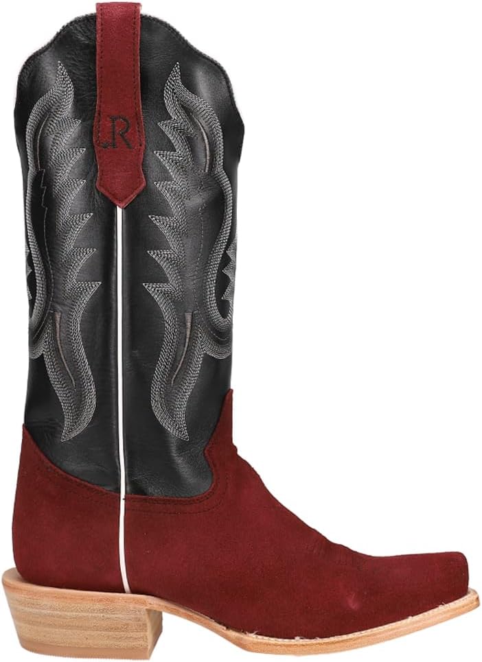 R. Watson Presents These Rhubarb Rough Out And Black Sinatra Cowhide Western Boots. These Boots Have A 10 Row Stitch Pattern, R. Watson Comfort System, All Leather Stacked Heel, Counters, Solid Steel Shank, And 10 Iron Outsole. 13 Inch Total In Height.
