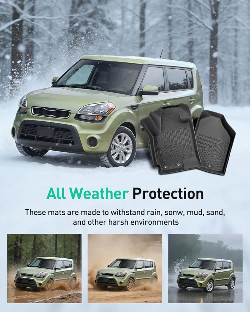 All-Weather Protection: Our all weather floor mats offer superior protection for KIA Soul's interior. From mud and snow to spills and dirt, our all weather floor mats for Soul 2010 2011 2012 2013 keep your car's floor clean and well-maintained