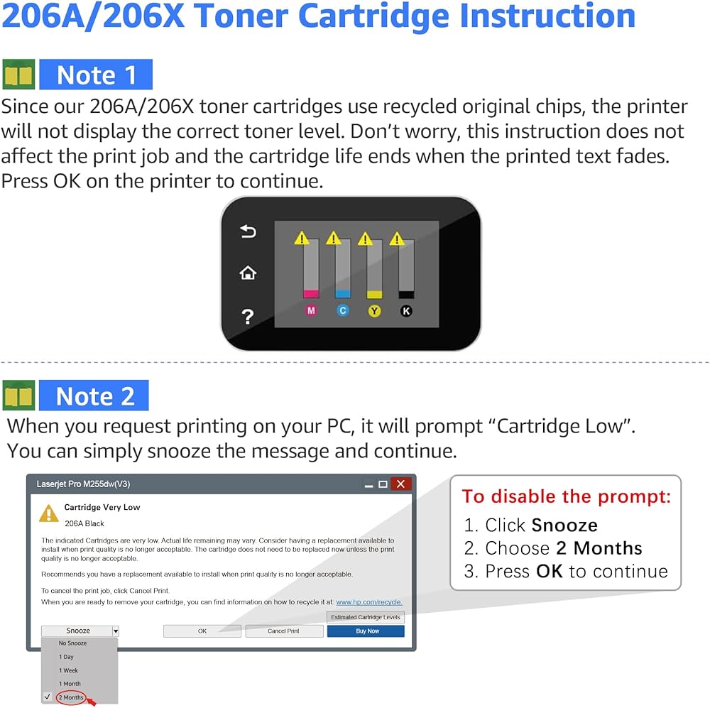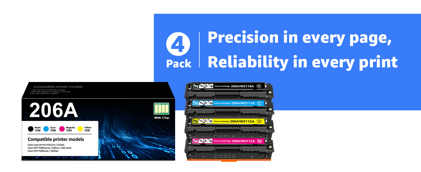 Latest Smart Chip Technology: Our 206A toner cartridges, high-yield toner cartridges, are equipped with advanced smart chip technology, ensuring seamless compatibility and superior performance