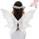 Premium Materials & Craftsmanship Our wings feature high-quality organza fabric that creates stunning iridescent effects under natural and artificial lighting. The semi-transparent material photographs beautifully, while embedded floral lace patterns add sophisticated detail that won't peel or fade over time.