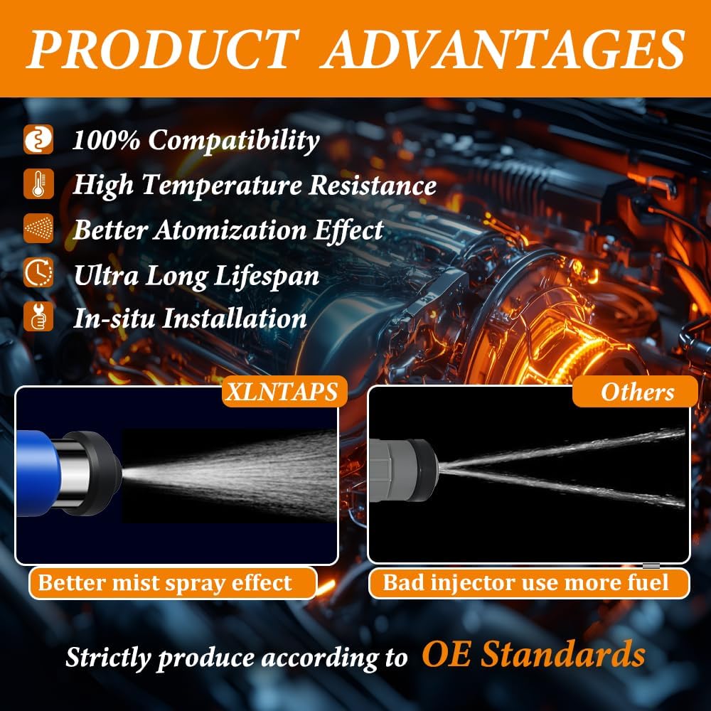 【PREMIUM MATERIAL】- The XLNTAPS fuel injectors is manufactured strictly in accordance with OE specifications and are made of composite materials, which can prevent corrosion of the fuel control body and extend its service life. High temperature viton O-rings can extend the sealing time of fuel injectors under extreme high temperature conditions.