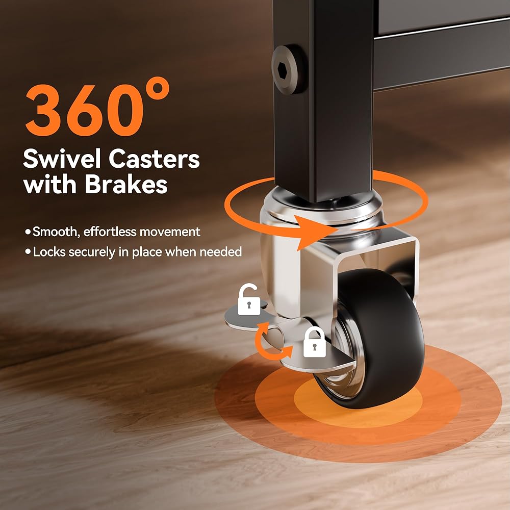 Lockable Wheels for Easy Mobility & Stability: Equipped with smooth-rolling swivel casters, this printer cart moves effortlessly when needed. Two lockable wheels keep the stand firmly in place while printing, ensuring safe and stable operation.