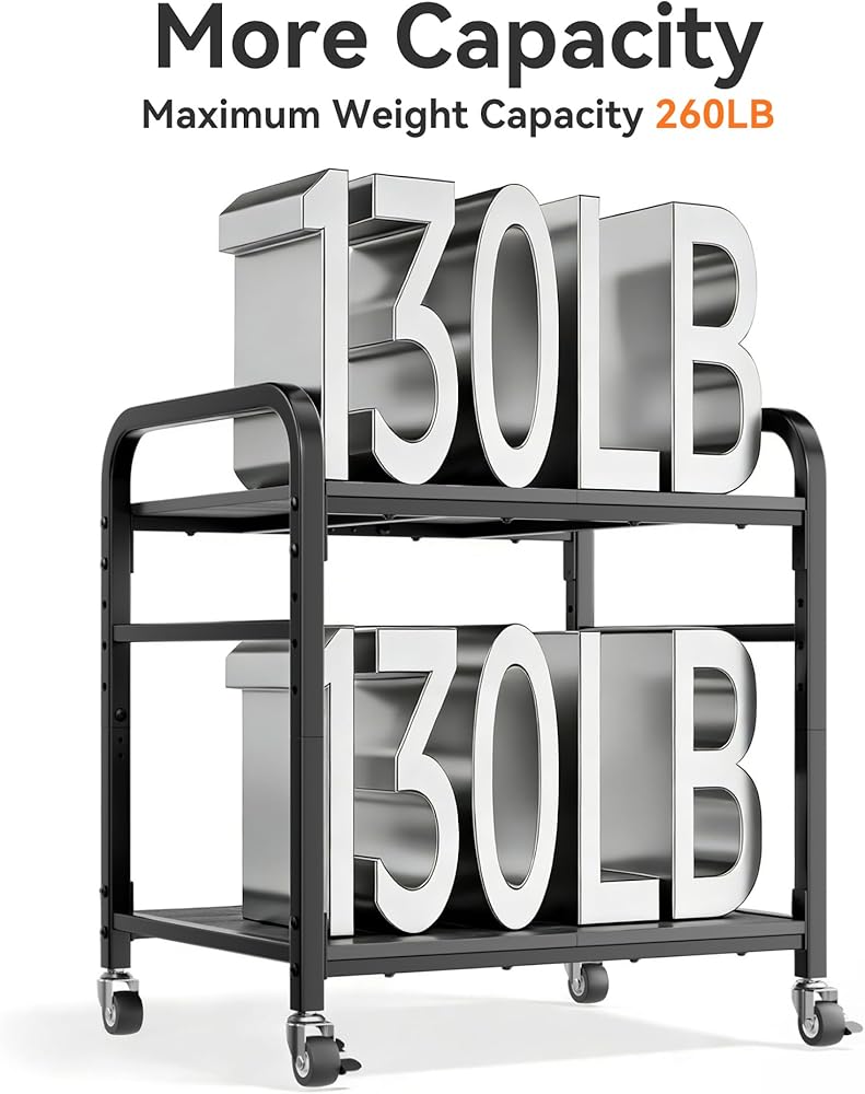 Heavy Duty Support up to 130 lbs per Shelf: Each tier supports up to 130 lbs, making this printer stand ideal for heavy printers, scanners, shredders, and office machines. Reinforced metal frame construction ensures stability and reliable daily use.