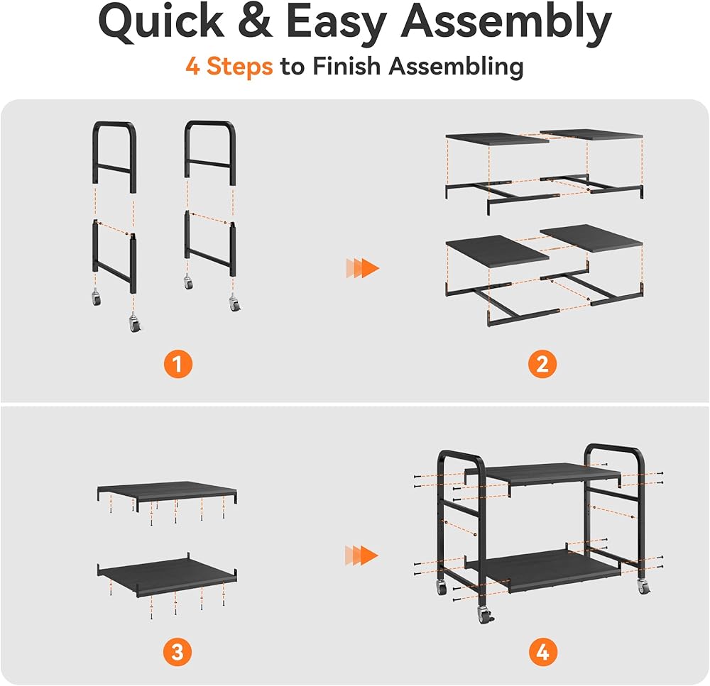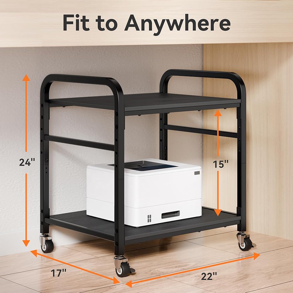 2-Tier Storage Design for Better Organization: The two-layer structure offers dedicated space for printers on one shelf while storing paper, ink, and office supplies on the other, keeping your workspace neat and clutter-free.