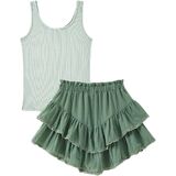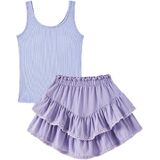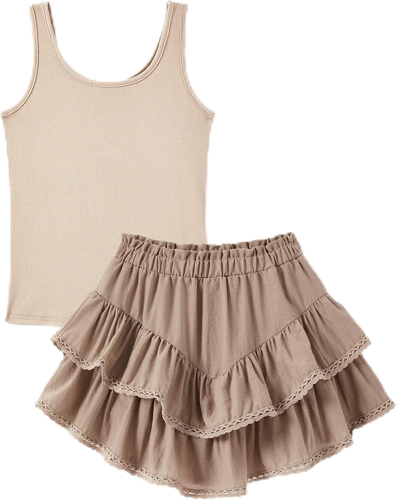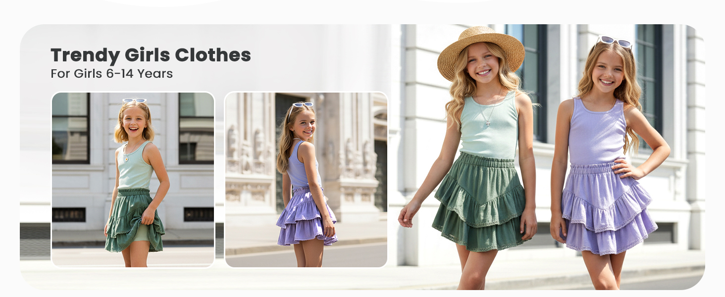 Size Info:Perfectly sized 6-14 years for tween girls trendy clothes fans; stretchy tank fabric fits diverse body types; skirt's built-in shorts add secure fit for active girls—refer to size chart for the best 2 piece skirt set match.