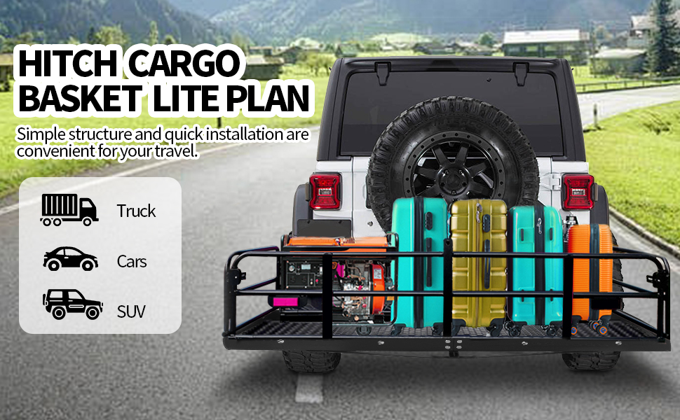 【MULTIFUNCTIONAL APPLICATION】: This hitch cargo basket is ideal for large and bulky cargo, such as bicycles, muddy lawn tools, camping supplies, coolers, tailgate grills, construction materials and anything you don't want to bring into the vehicle!