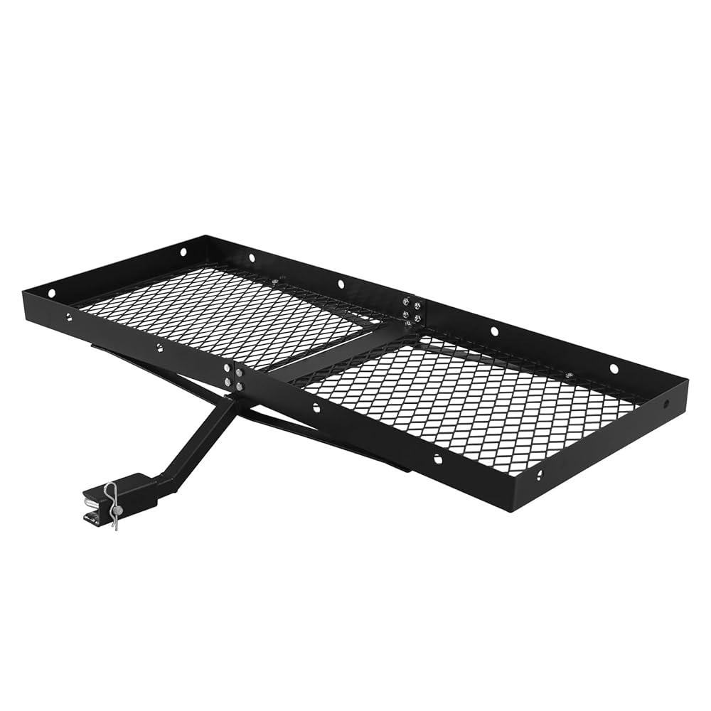 【VERSATILE DESIGN】 A tray-style hitch cargo rack is ideal for transporting large, bulky items. It is ideal for hauling game such as a deer carcass, as well as a variety of other items such as camping supplies, coolers, grilles and much more