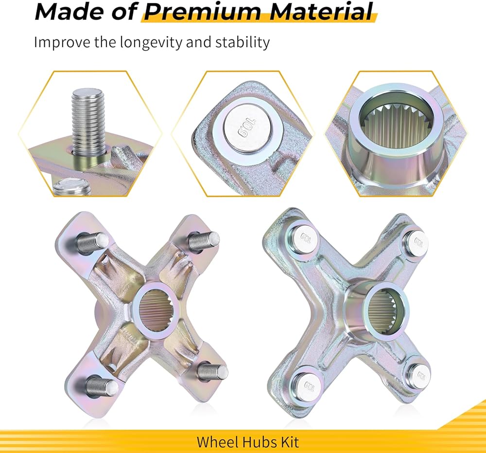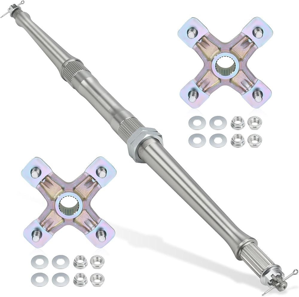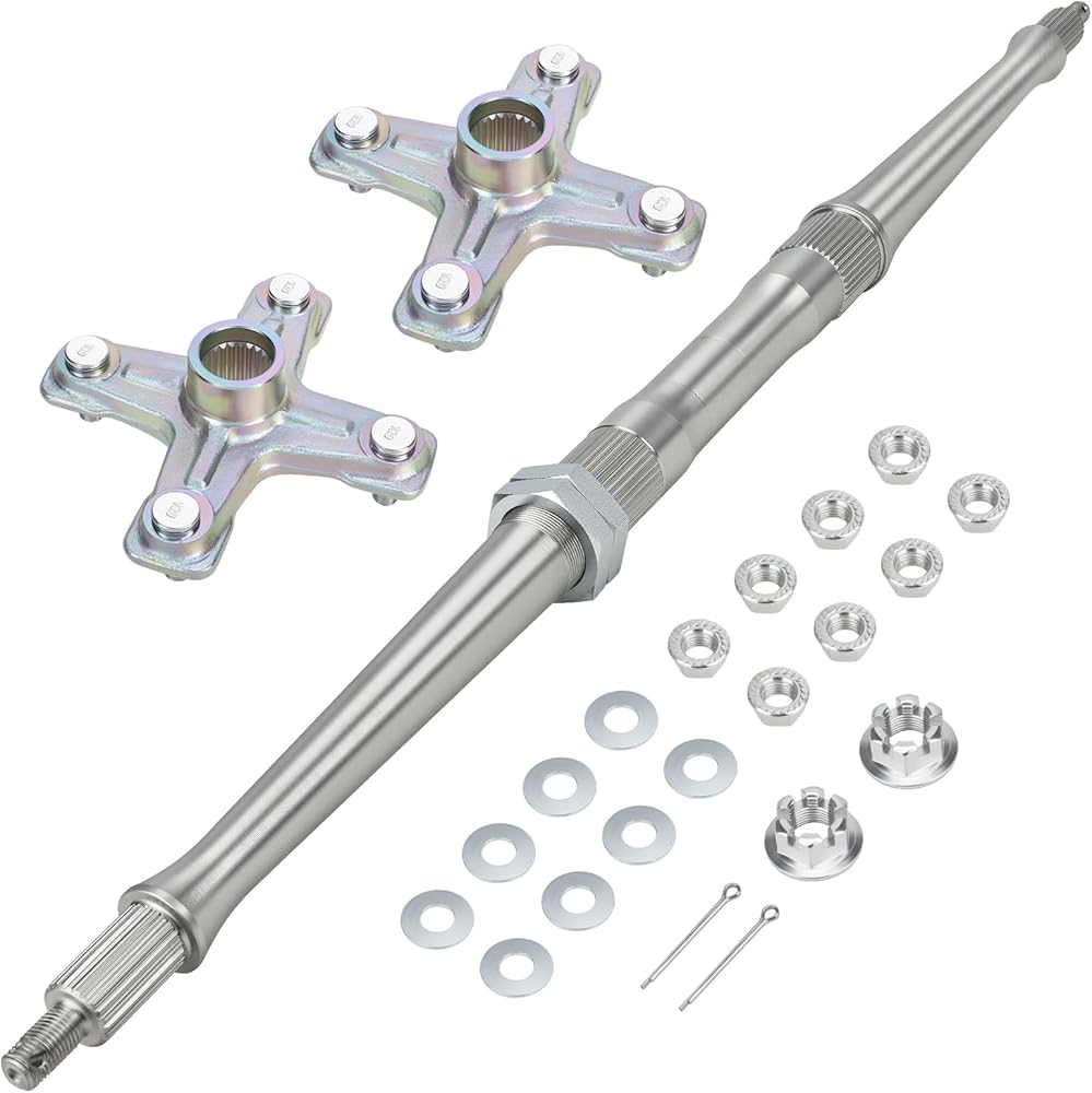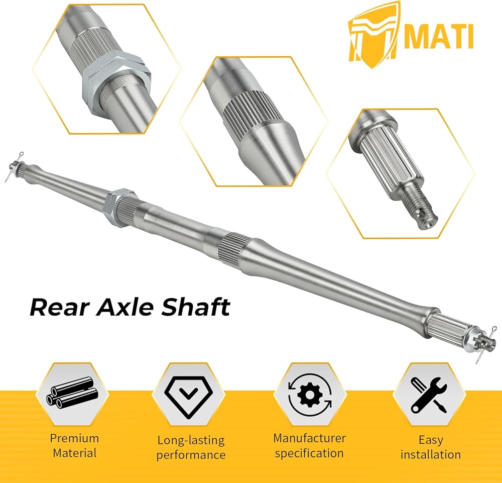 Feature: High strength steel forging and machined, the rear axle shaft and wheel hubs kit is sturdy, wear-resistant and anti-corrosion to provide a longer service life. Manufacturer specification and easy to install on rear wheel