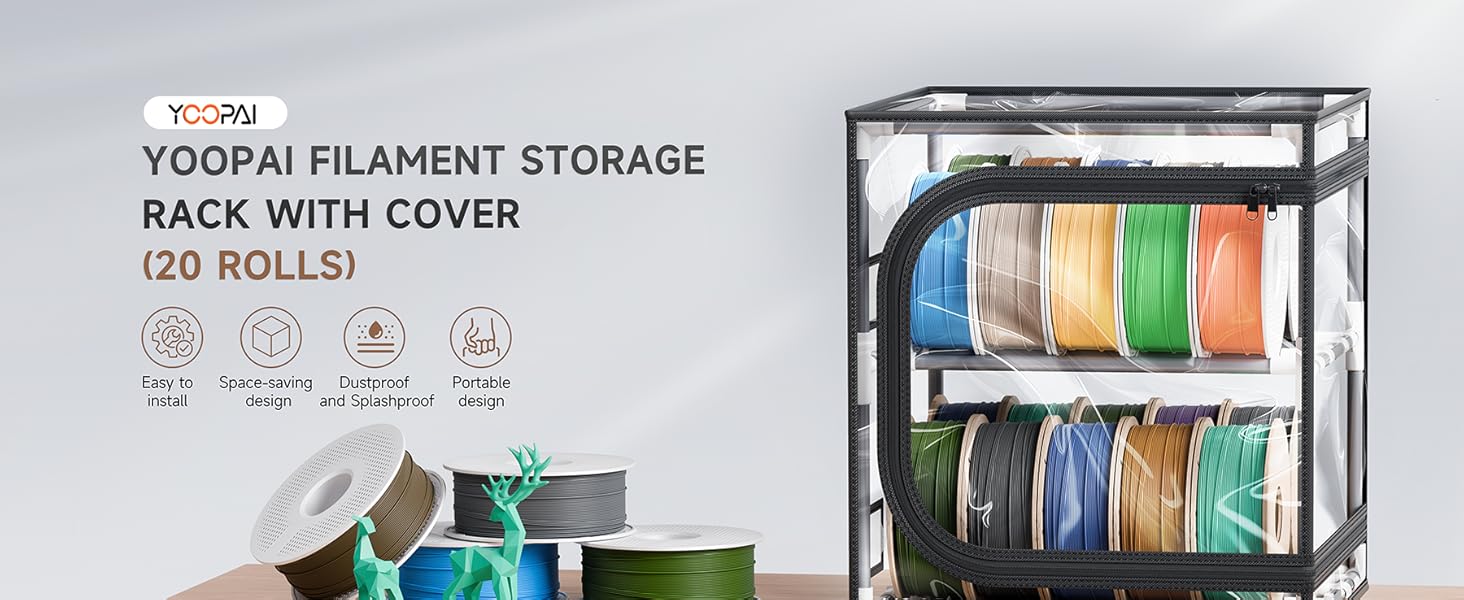 YOOPAI 3D Printer Filament Storage Box – 2 Tier Filament Storage Rack with Transparent Cover, Holds Up to 24 Rolls 1KG – 3D Filament Storage Organizer for Home, Workshop & Studio