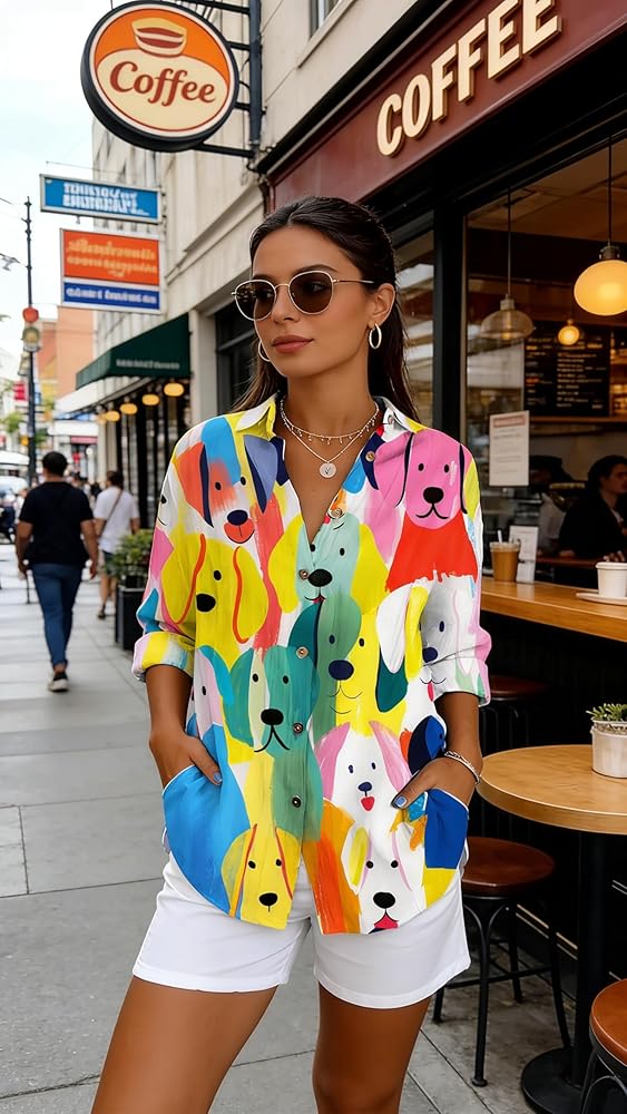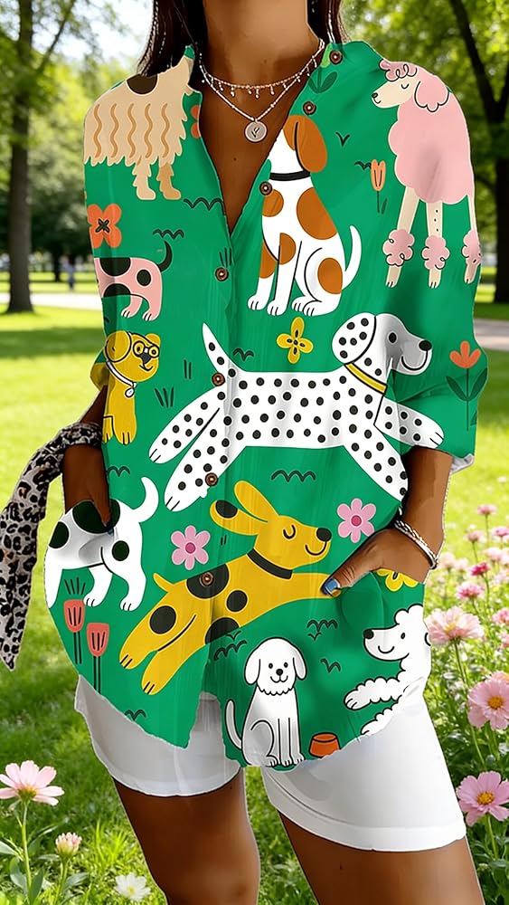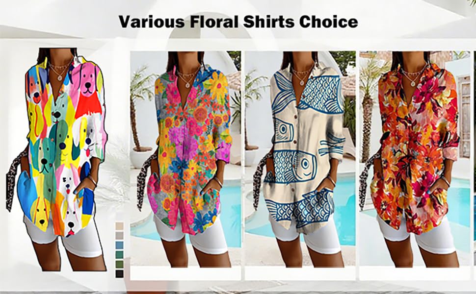 Features:Womens 3D printed tops, V neck collared dressy blouses,long sleeve,3/4 sleeve botton down shirts,2026 casual work shirts.