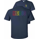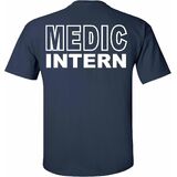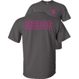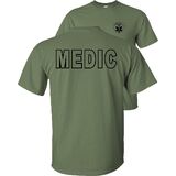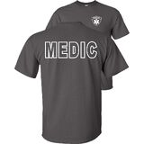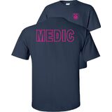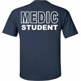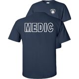 The Emergency Medical Services Medic design is on the back and a small print on the front left chest.