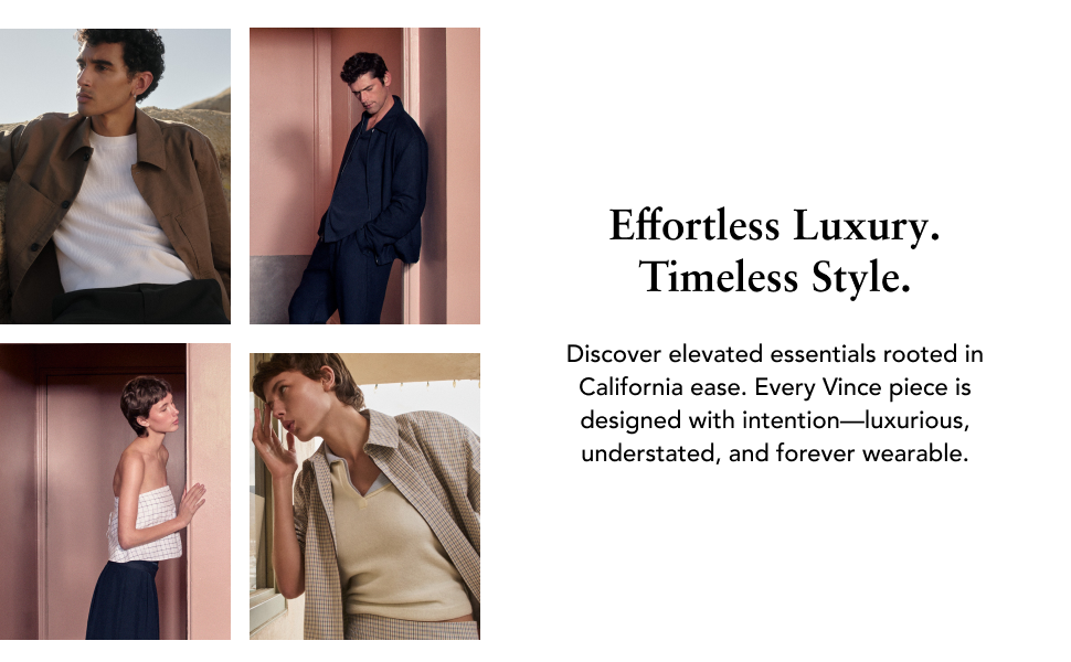 VINCE: Since our founding in 2002, every addition to our women's and men's ready-to-wear, accessories and home collection is crafted to inspire a timeless confidence, allowing one to think more clearly and creatively — the truest luxury. This is Vince