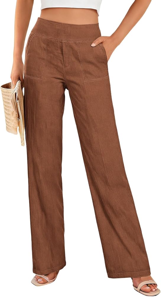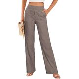 Design: Comfortable women's linen pants featuring a high-waisted, straight-leg silhouette for a stylish yet comfortable fit. Side pockets provide convenient storage.