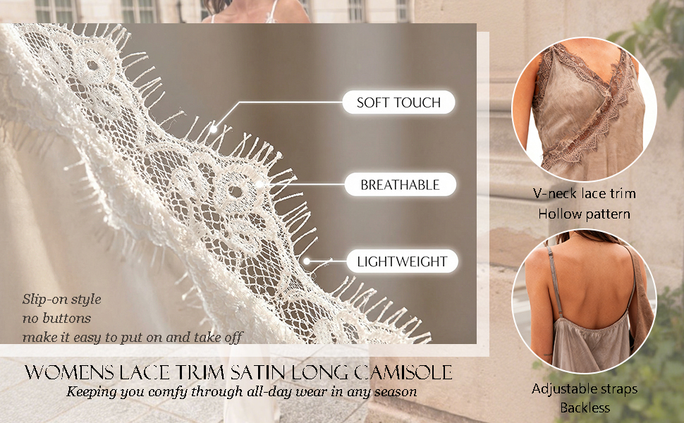Material: This vintage satin flowy lace tank top is crafted from smooth, lightweight fabric, soft polyester blend—breathable and skin-friendly, keeping you comfy through all-day wear in any season