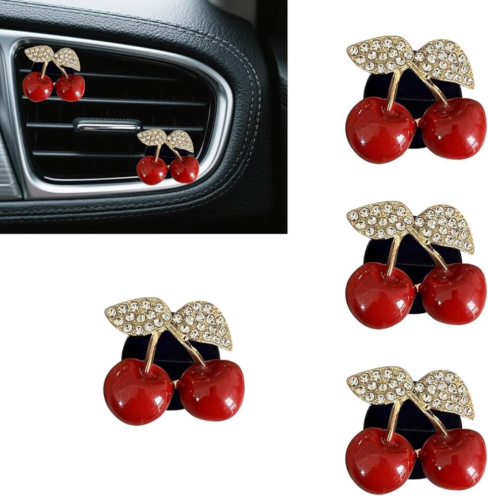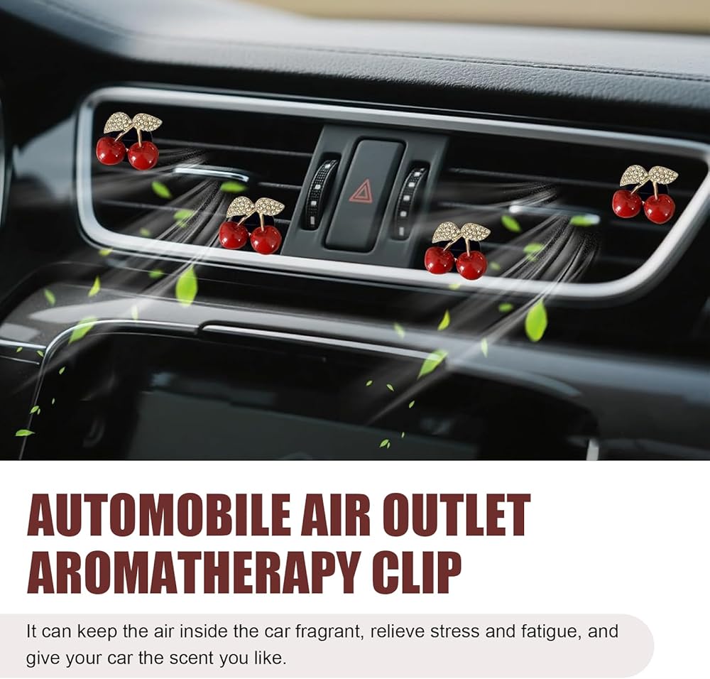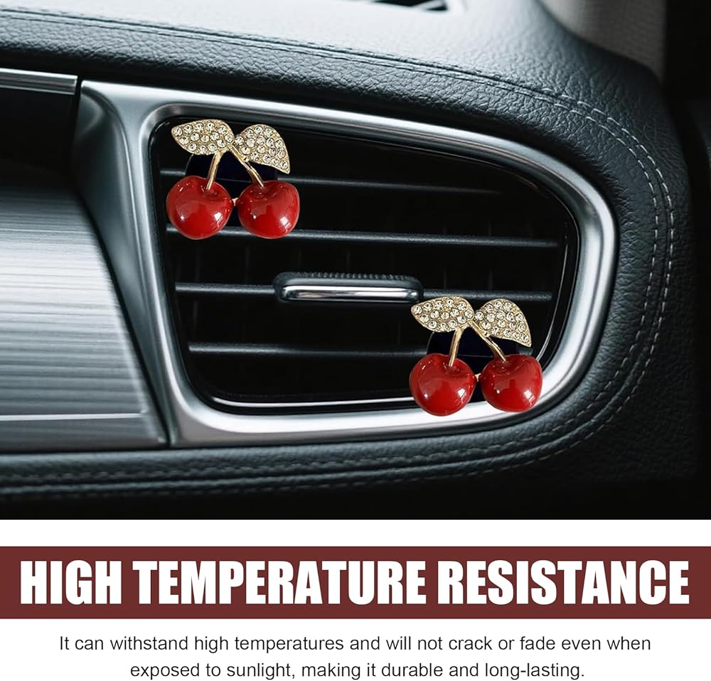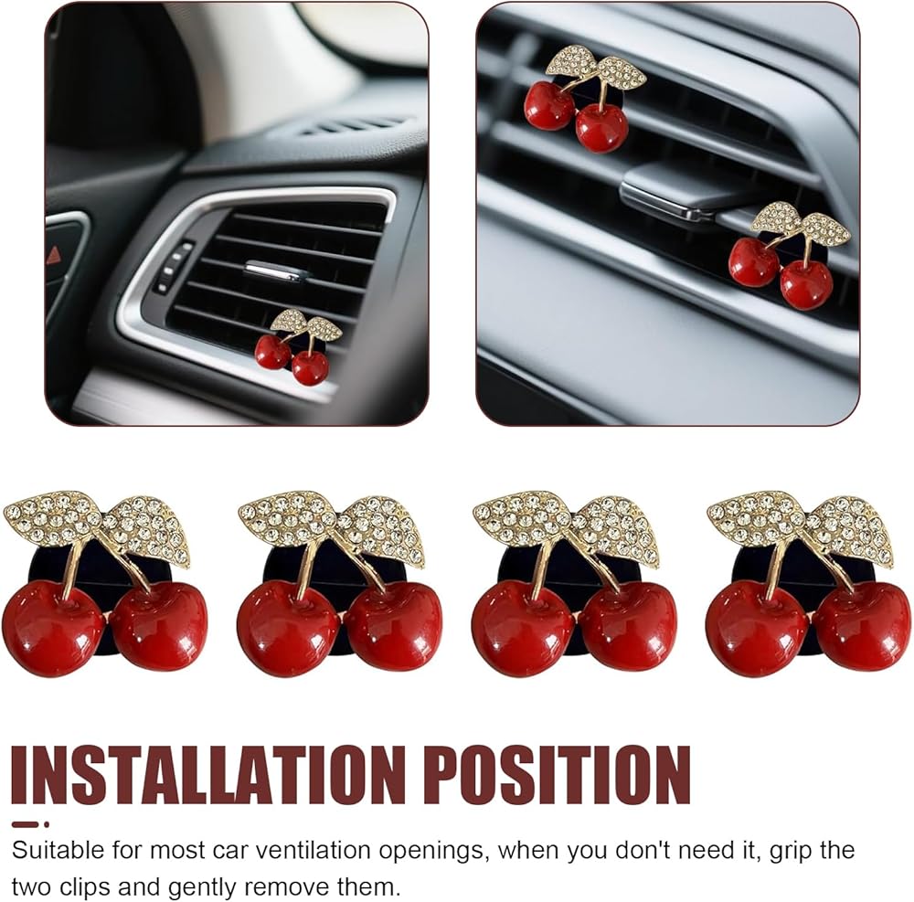Package Details: Comes with 4 cherry-shaped ornaments, each measuring 1.37 inches x 1.06 inches. Their compact size fits most vents without blocking airflow, serving as both functional fresheners and charming decor for cars, blending style and utility seamlessly.