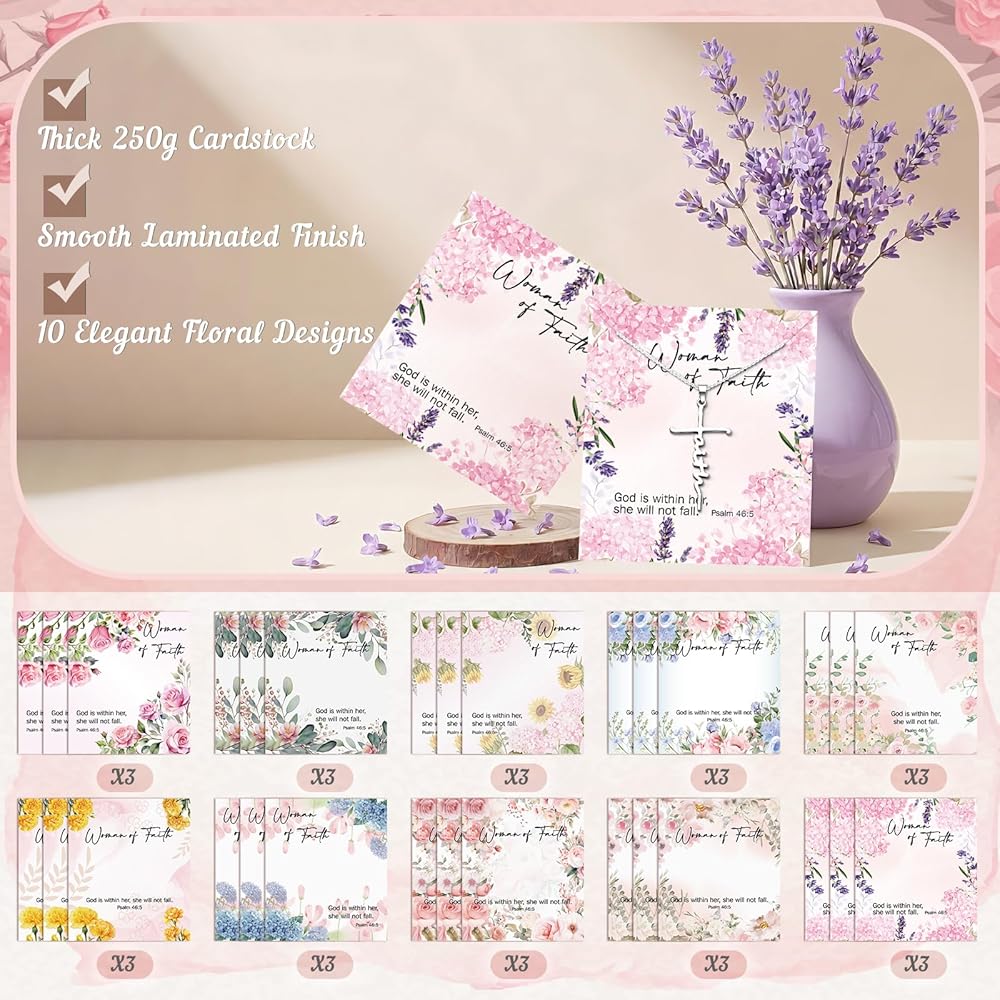 This set provides thirty complete necklace and card units offering significant value for those seeking quality religious gifts in quantity for group events or maintaining a ready supply of presents