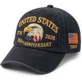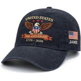Mark a monumental chapter in American history with the 250th Anniversary USA Hat, a stylish and meaningful tribute to 250 years of independence, resilience, and national pride. Thoughtfully designed with high-quality embroidered details, this patriotic cap captures the spirit of the United States in a bold yet classic way. Whether worn to commemorate historic events, patriotic holidays, or everyday outings, it's a powerful symbol of love for country and heritage. Crafted for both comfort and durability, this adjustable hat offers a secure, flexible fit suitable for most men. The breathable fabric makes it ideal for long days outdoors, while the premium embroidery ensures the design remains sharp and vibrant for years to come. What truly sets this hat apart is the option to personalize it with a custom name, transforming it into a unique keepsake or heartfelt gift. Perfect for history enthusiasts, veterans, or proud Americans, this 250th Anniversary cap is more than an accessory—it's a celebration of a nation's journey and a moment worth remembering.