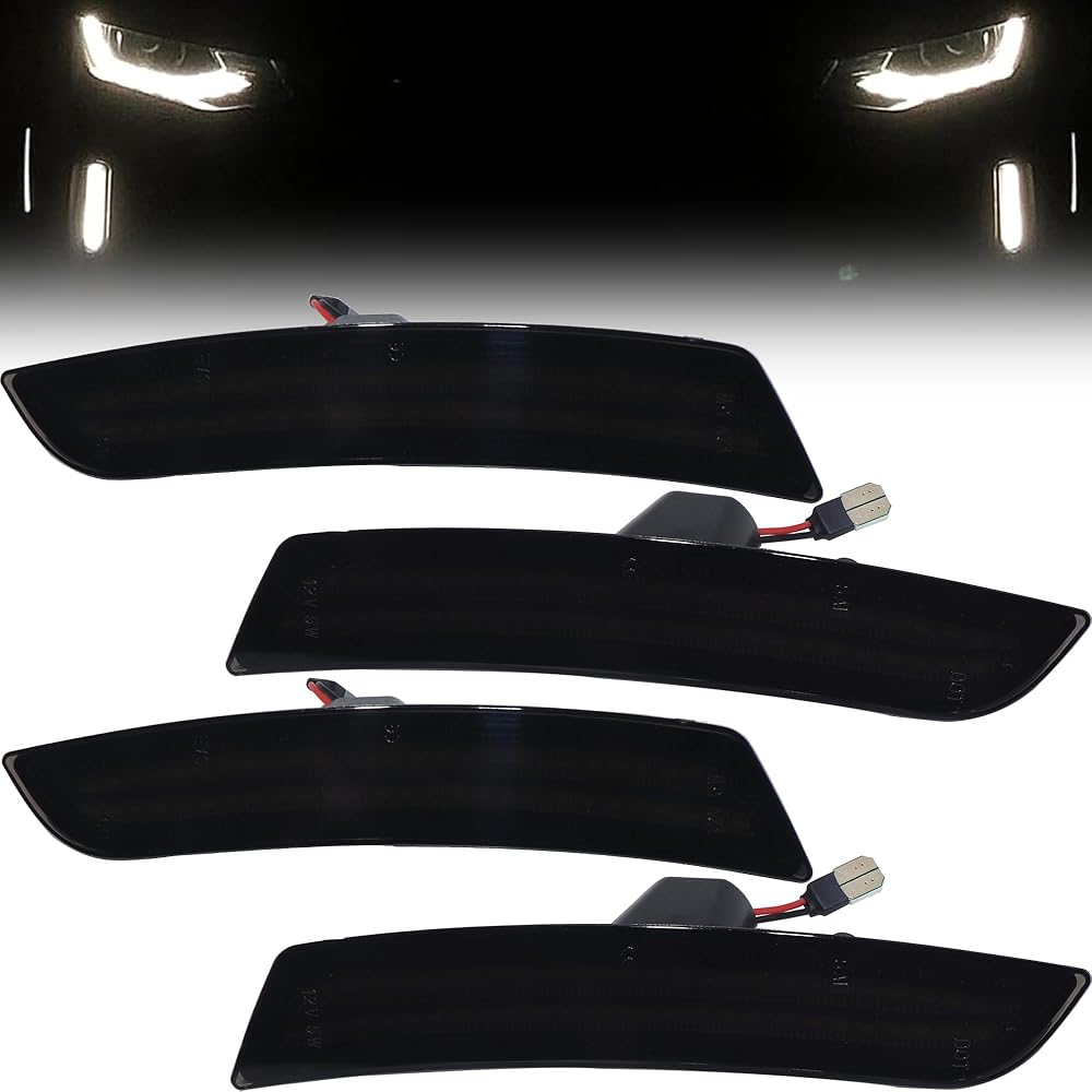 LED Side Marker Lights for 2016-2024 Chevy Camaro SS LS LT ZL1 LT1 Smoked Lens Front Rear LED Sidemarker Driving Singal Lamps 23169181 20896549