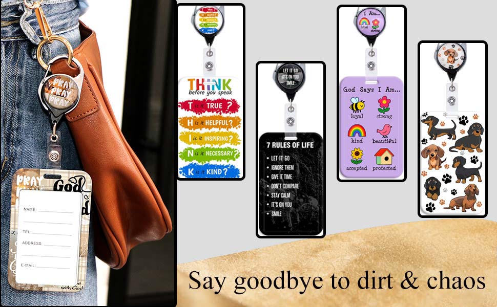 The id badge holder with lanyard includes a lanyard for keys, a vertical id badge holder and a cute badge reel that can be easily extended up to 24 inches, Nylon cord stays durable, wear-resistant for daily heavy use. you can easily scan your id card holder without taking them out, great for daily use for work office school or home