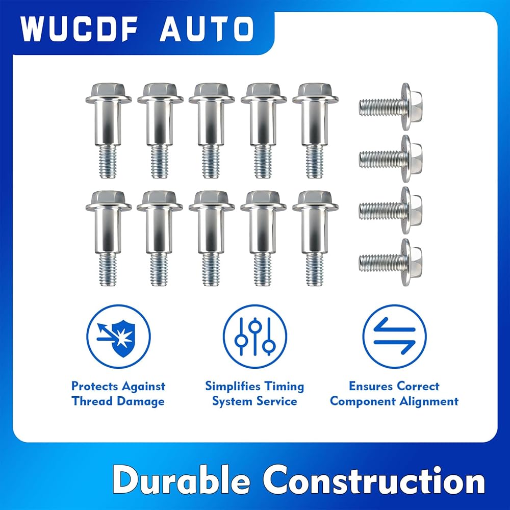 【Durable Construction & Superior Quality】- Heat-resistant alloy bolts withstand engine bay thermal stress. Serrated locking prevents timing system vibration loosening.Compression washers accommodate cover thermal expansion for consistent sealing.Oil-resistant coating shields threads from oil ingress.Precision threads match OEM holes with anti-rotation flanges for foolproof installation,ensuring timing cover integrity and reducing maintenance risks.