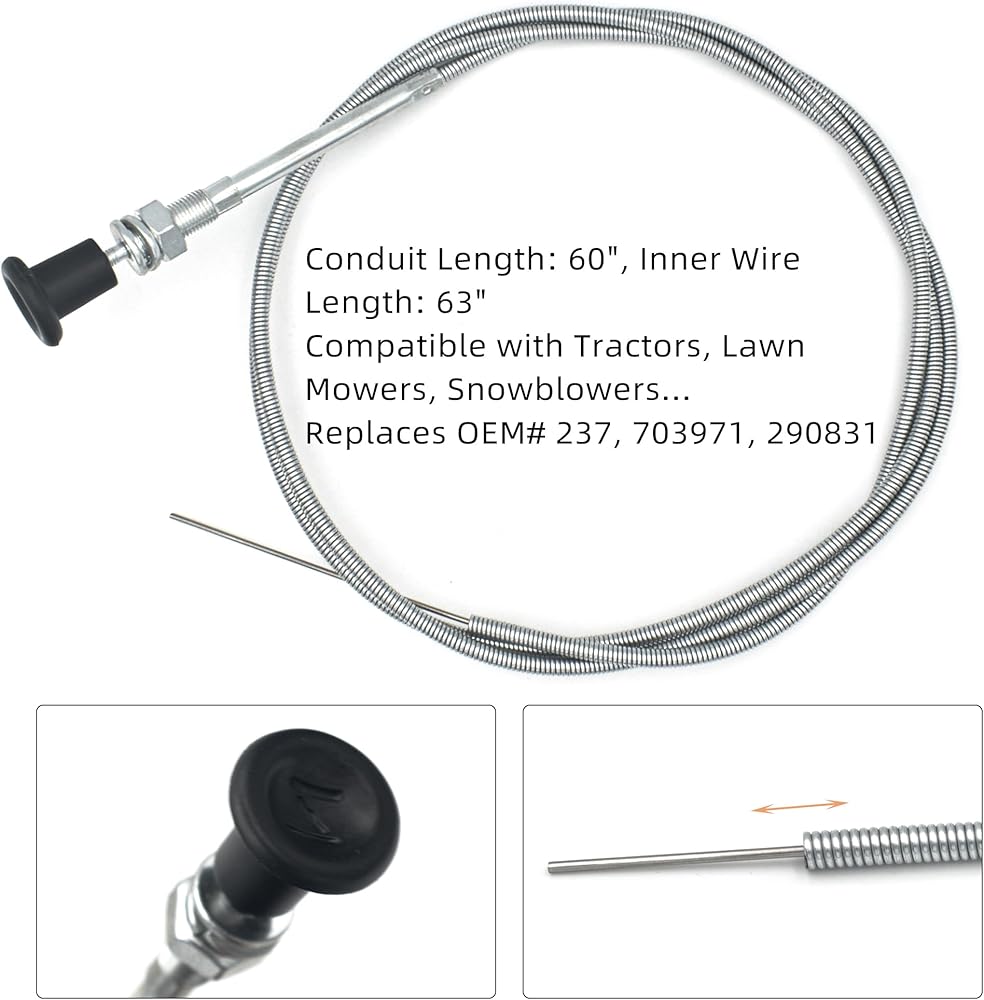 GEARLINTON 237 Rotary Universal Choke Cable Push Pull Control Cable, 63″ Inner and 60″ Conduit (2-3/4″ Travel) with Outer Shealth for Mowers and Tractors