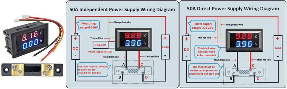 Current Measuring range: DC 0 - 50A(Size:1.89*1.14*0.86in)