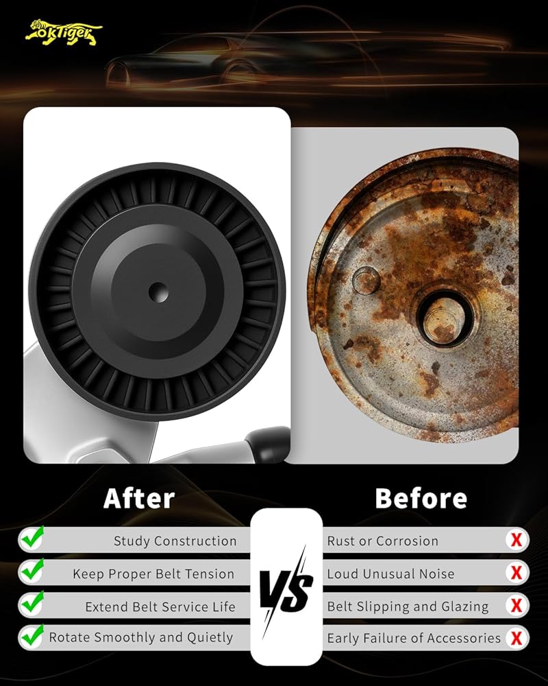 【Solve Engine Problems ,Timely Replacement】: Replace the tensioner to eliminate 4 major engine problems: abnormal noise, tensioner failure, belt slippage and difficult ignition—protect your engine and ensure smooth operation.