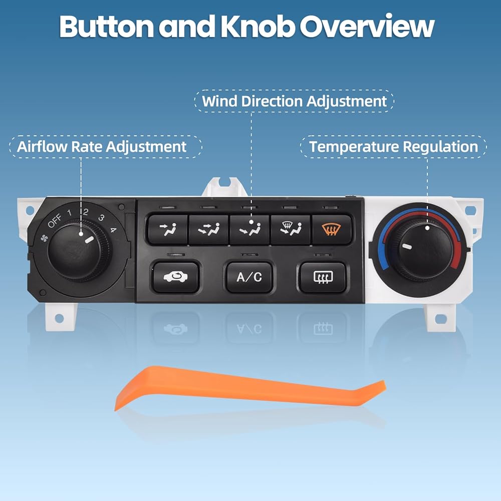 Functions: to control and regulate the vehicle's heating, ventilation, and air conditioning (HVAC) system. It acts as the main user interface for adjusting cabin climate settings.
