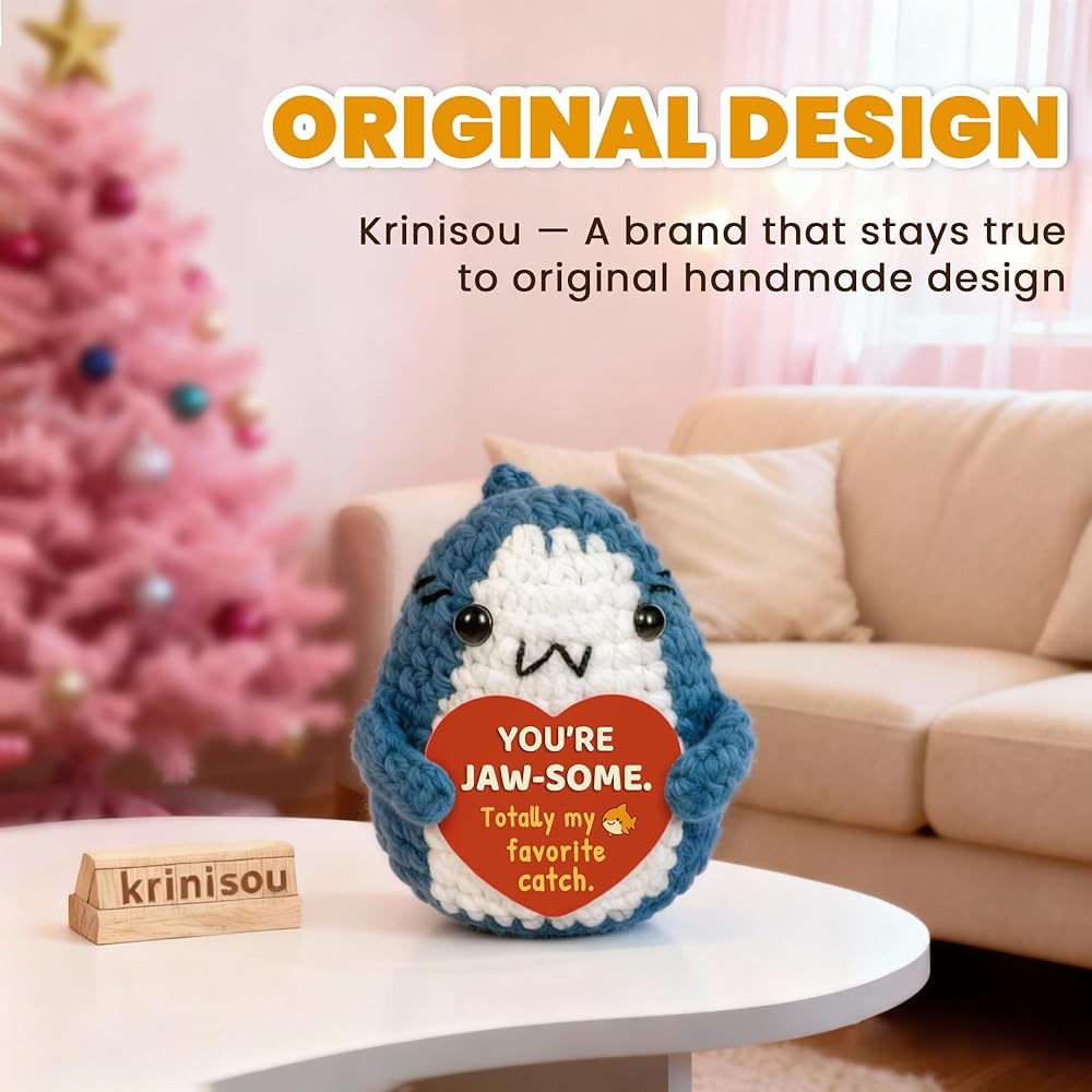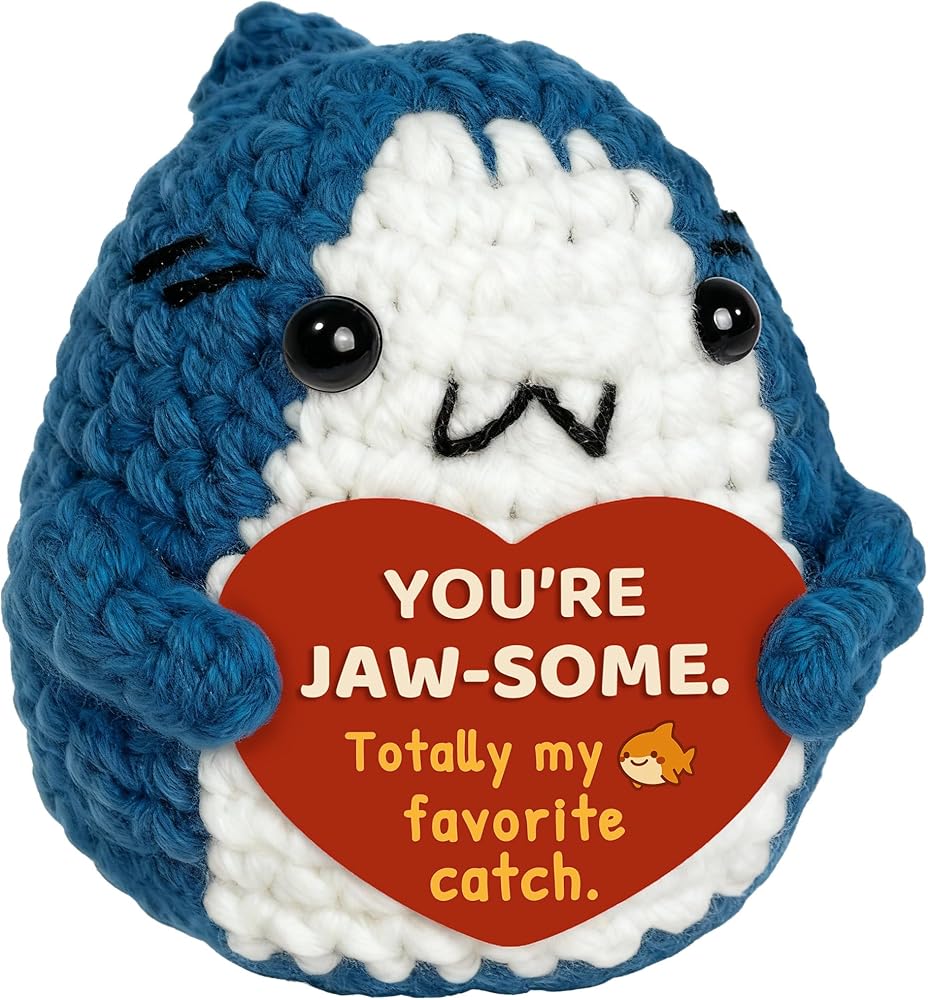 Cute Design with a Sweet Message: This adorable crochet shark comes holding a heart-shaped message card that reads “You're jaw-some. Totally my favorite catch.” A playful pun and a warm compliment that instantly brings a smile