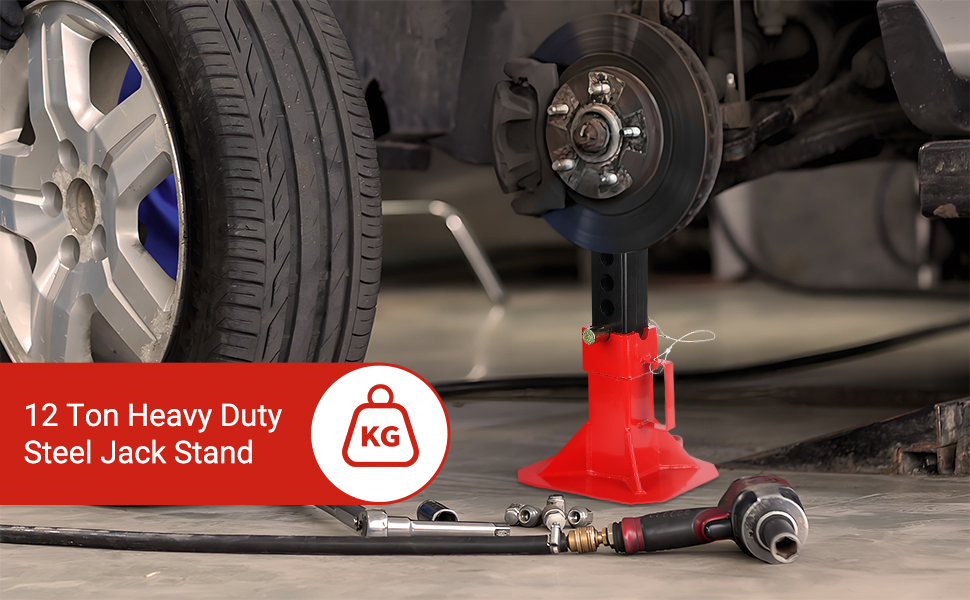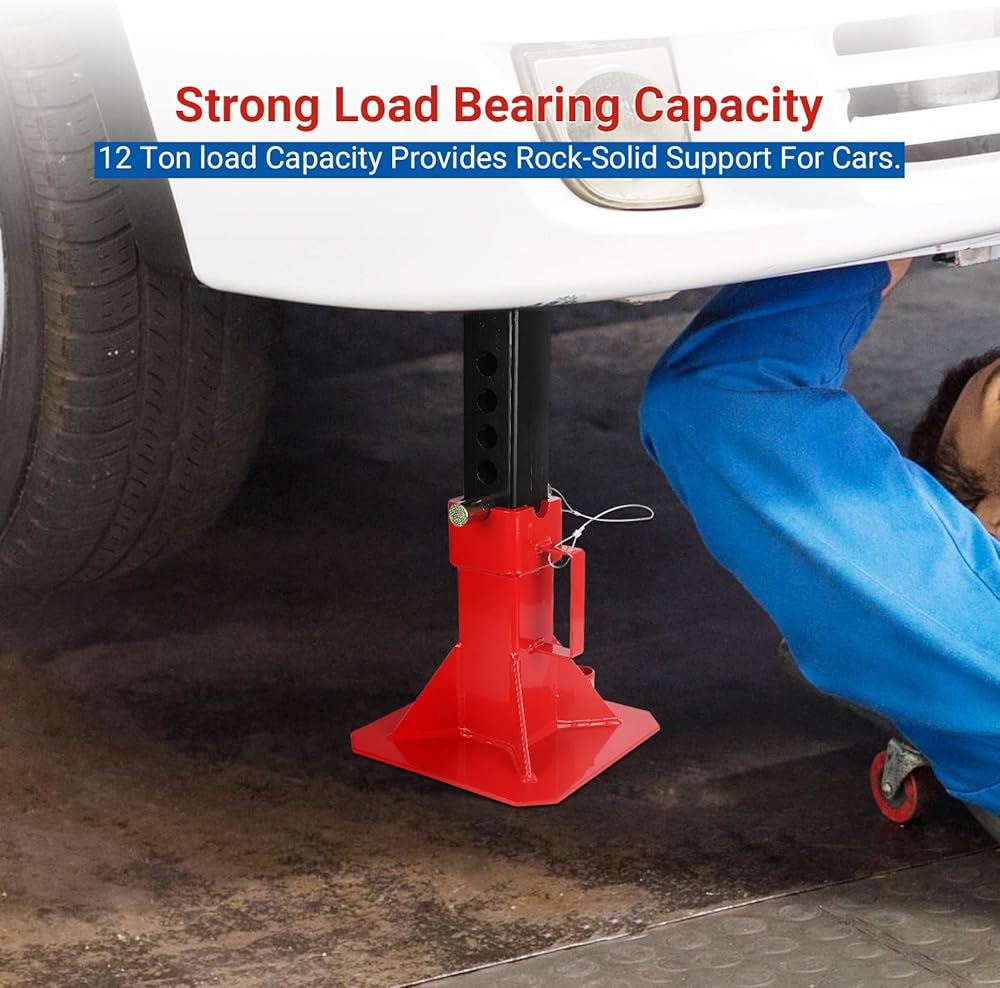 【Wide Application】This Pair of 12-Ton Jack Stands is ideal for supporting cars, trucks, trailers, sedans,SUVs, ATVs, UTVs and equipment in fleet garages, agricultural, industrial and construction environments.